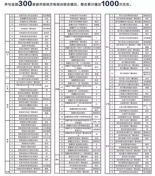 全國300+電視臺及數(shù)十間視頻網(wǎng)絡平臺同期播放!