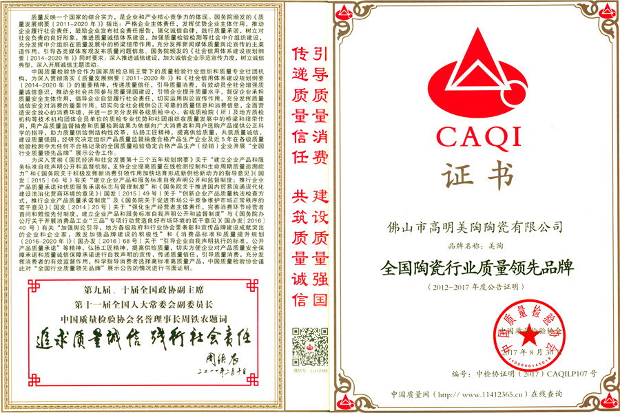 榮譽-全國陶瓷行業(yè)質(zhì)量領(lǐng)先品牌