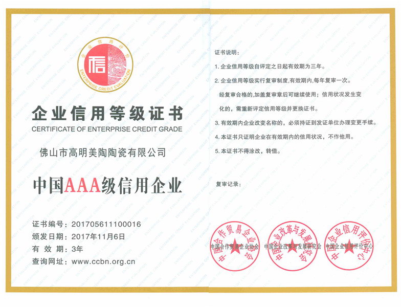 企業(yè)信用等級證書