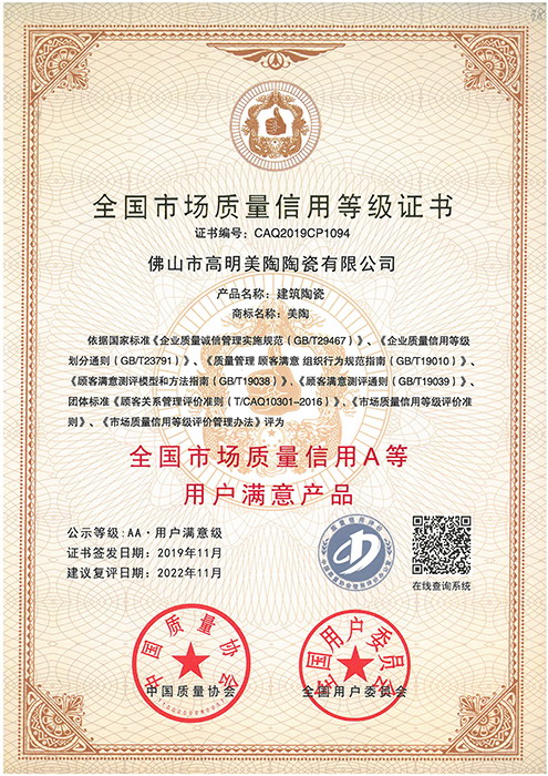 全國市場質(zhì)量信用A等用戶滿意產(chǎn)品