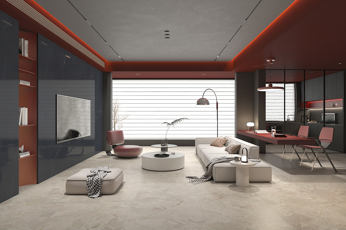 靈感源自莫奈花園奢石 以時(shí)光釉+AI復(fù)刻技術(shù),1:1復(fù)刻天然奢石肌理 精雕工藝讓紋理自然下陷,指尖可觸真石起伏 整體以柔和暖米色為主調(diào),紋理似花園里自然暈染的石面脈絡(luò) 自帶溫潤細(xì)膩質(zhì)感,為空間注入如漫步春日花園般的愜意 每一寸鋪貼,都成為時(shí)光與自然交融的藝術(shù)縮影